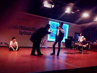 标准的发音,流畅的表达,活灵活现的演绎,nothing is impossible的创意。欢歌笑语中,掌声雷动中,自豪与不舍中,高2014级英语才艺秀于2016年5月10日在学校五楼学术大厅如期举行并圆满落幕。来自本年级十个班的同学以英语短剧、英语配音以及英语歌舞等多种形式向与会的同学、家长和来宾们呈现了一台展示青春活力、个人才艺及集体创意的视觉、听觉盛宴。